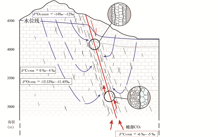 方解石脉、围岩和钙华的同位素特征